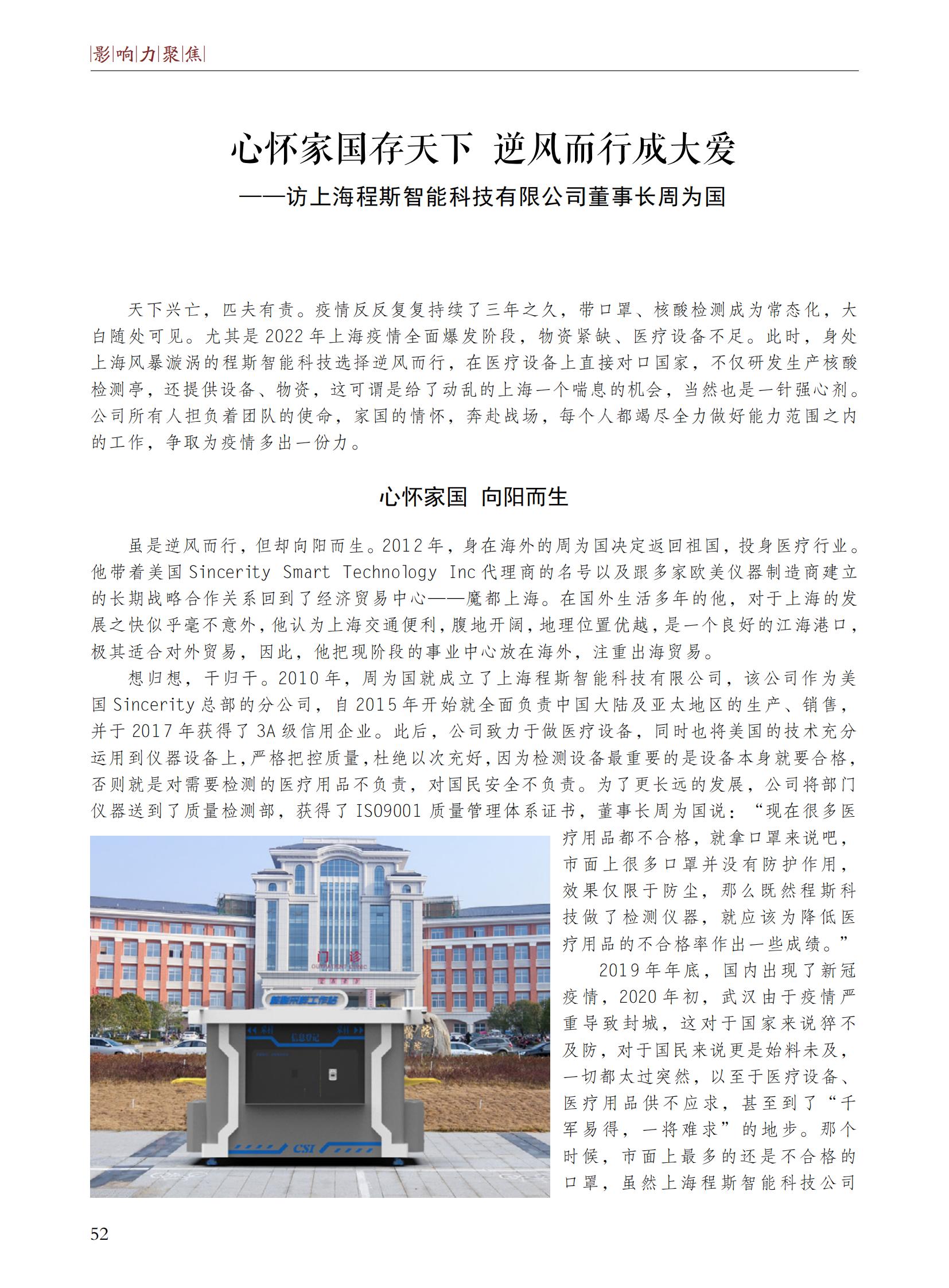 心怀家国存天下 逆风而行成大爱 --访上海程斯